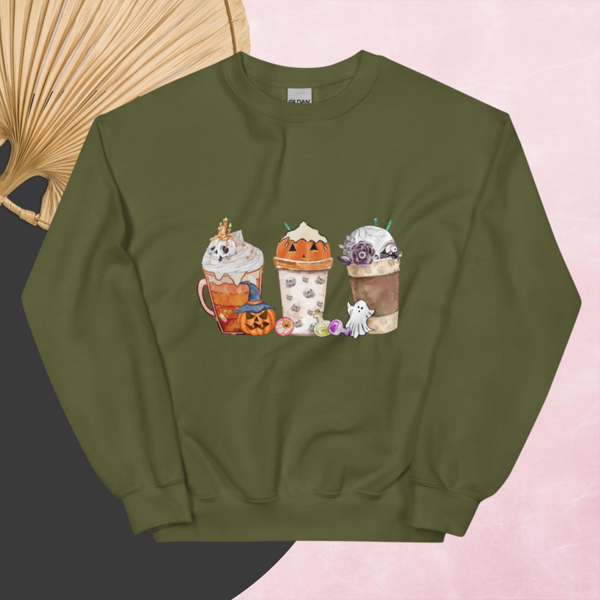 Pumpkin Spice Latte Unisex Sweater, Coffee Cups, Halloween Sweater