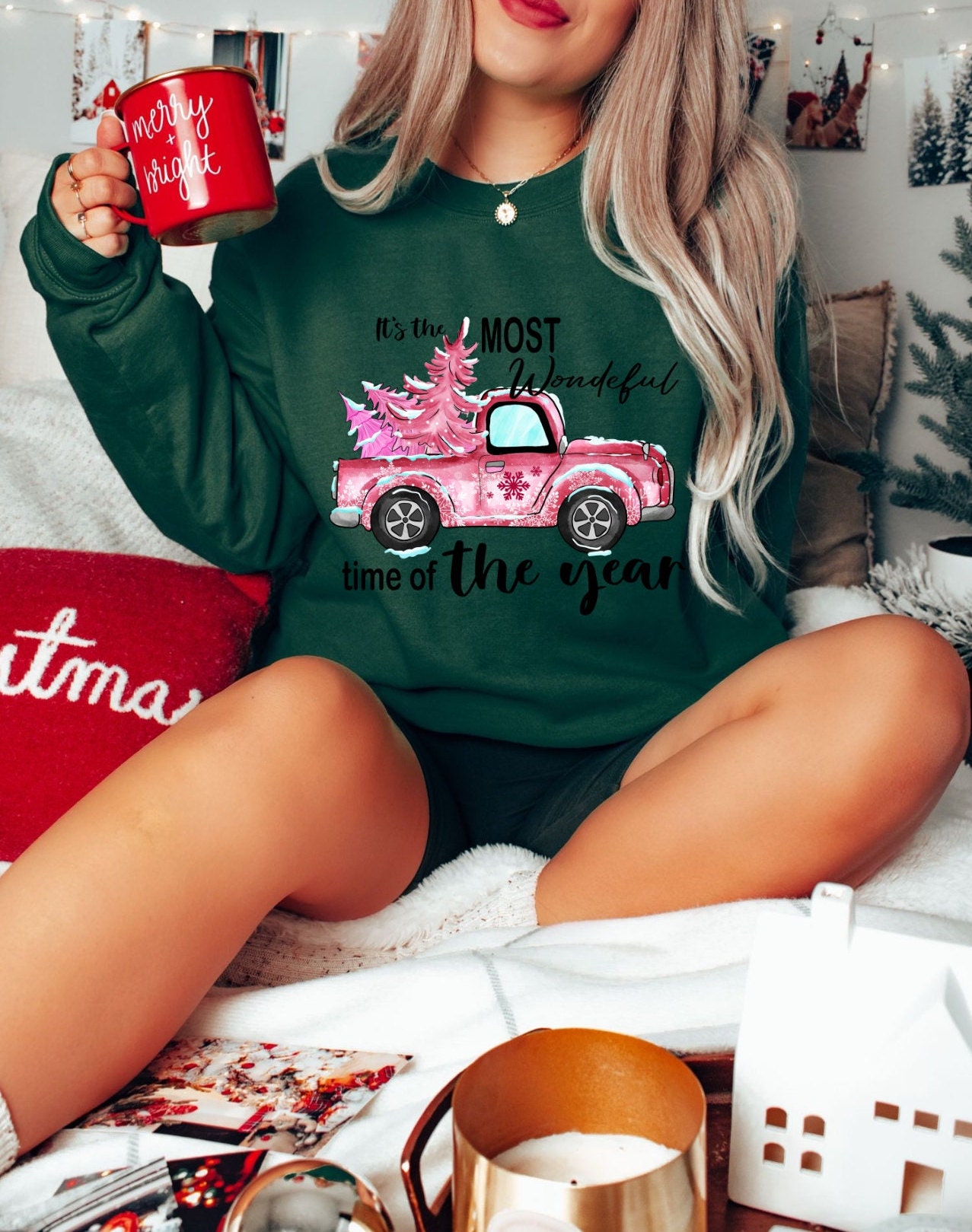 Christmas Truck Sweater, The Most Wonderful Time Of The Year Sweatshirt, Christams Truck Shirt, Christmas Gift Sweater.