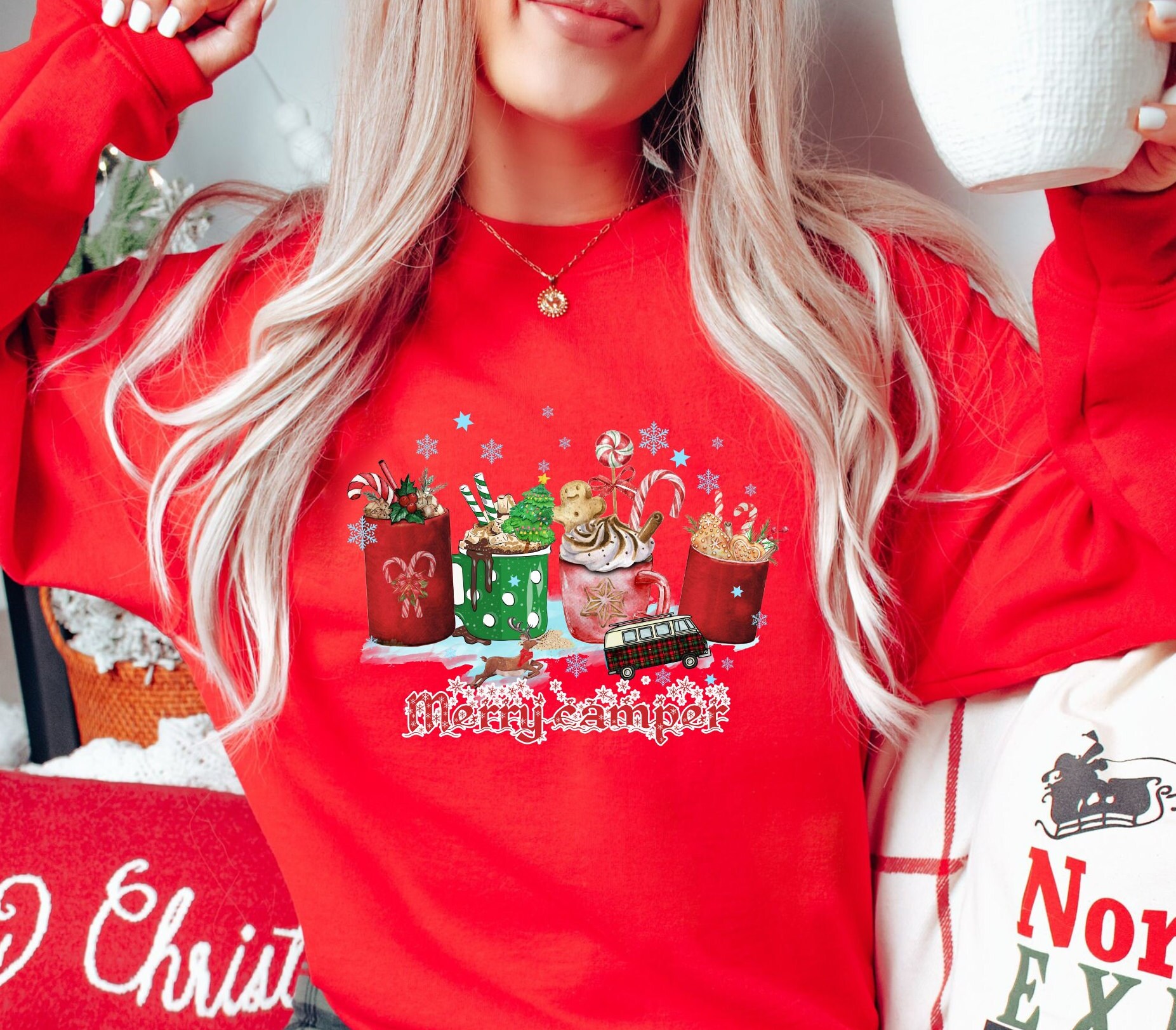 Christmas Coffee Sweater, Merry Camper Sweatshirt, Coffee Lover Sweatshirt, Weihanschts Shirt.