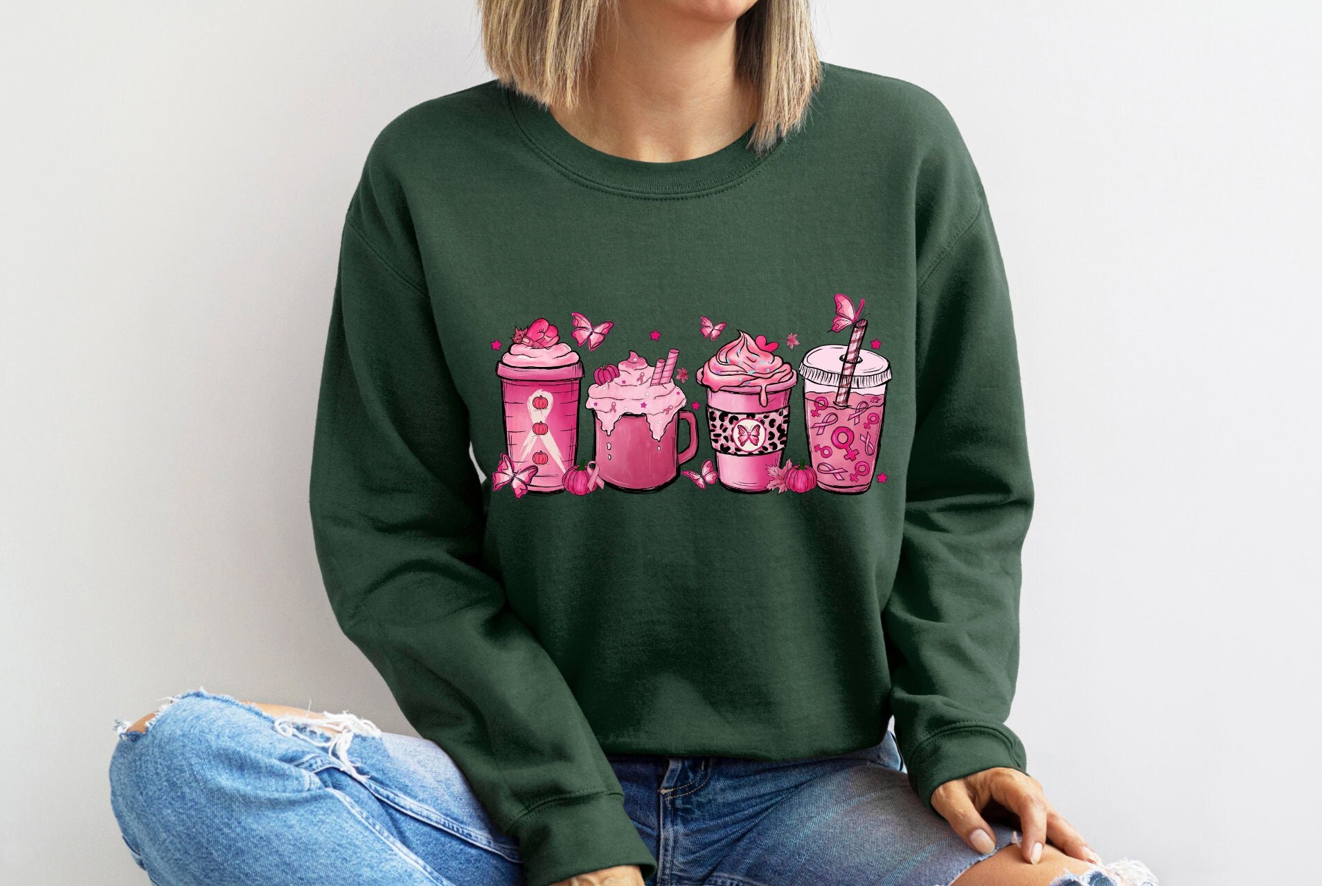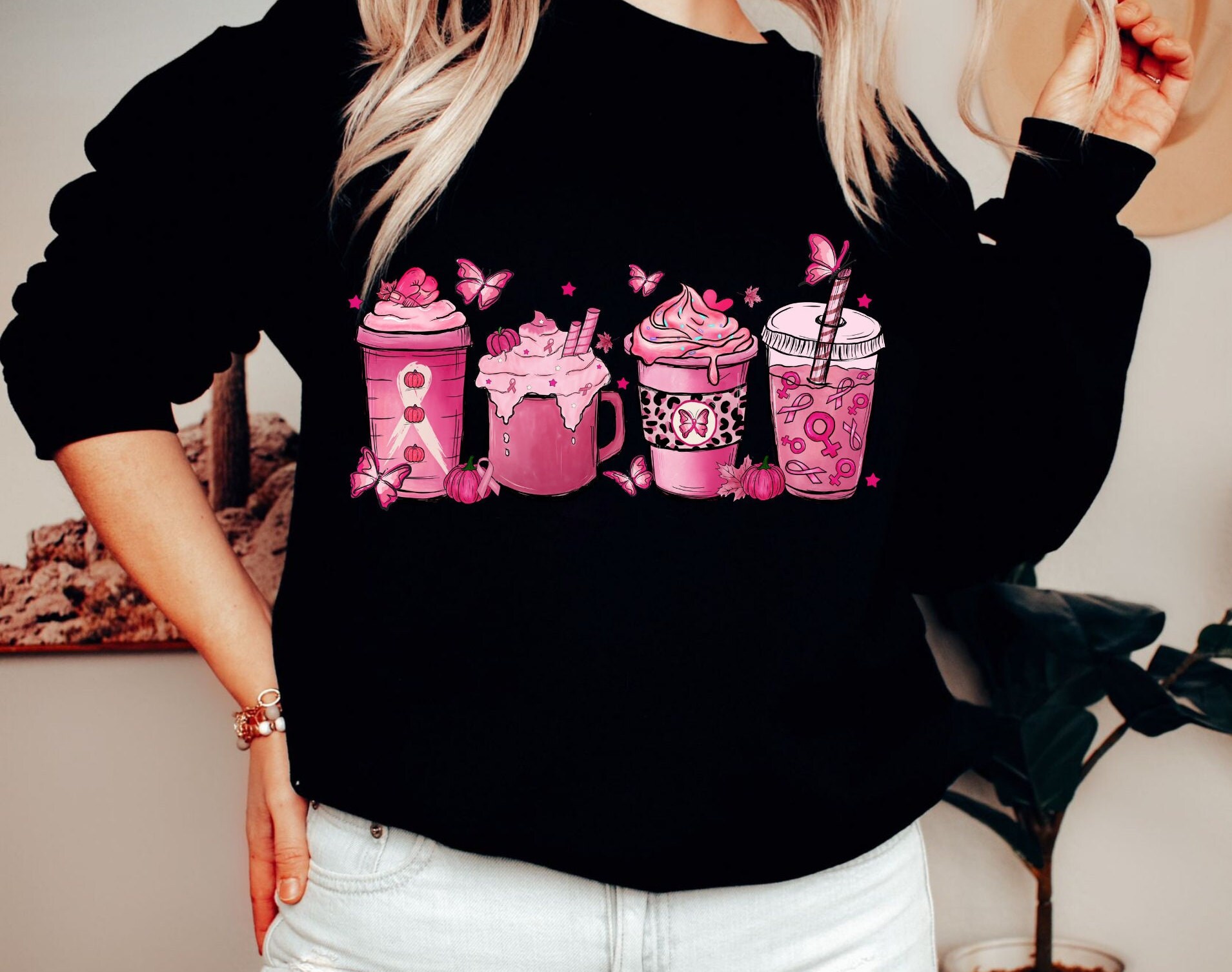 Breast Cancer Sweater, Sweet Autumn Sweatshirt, Autumn Coffee Sweater.