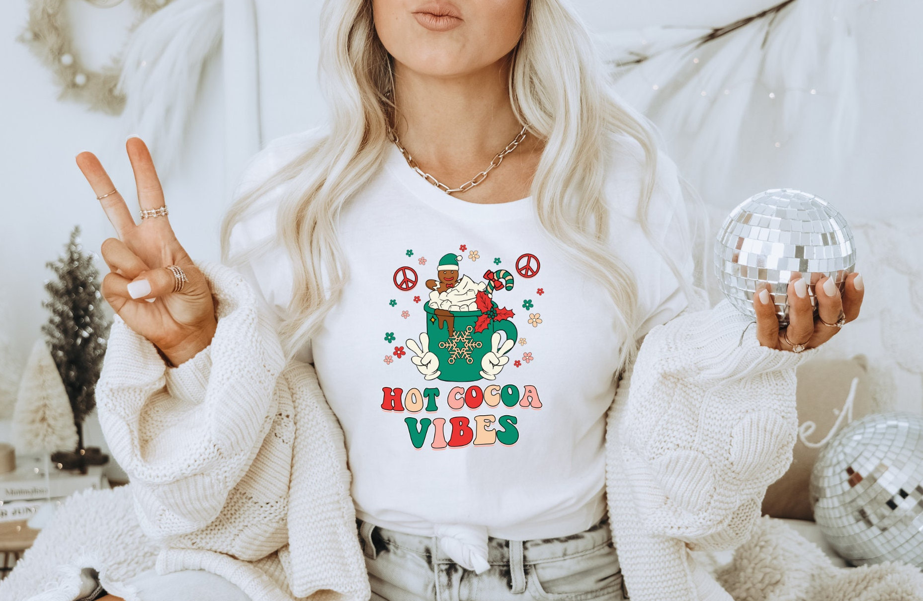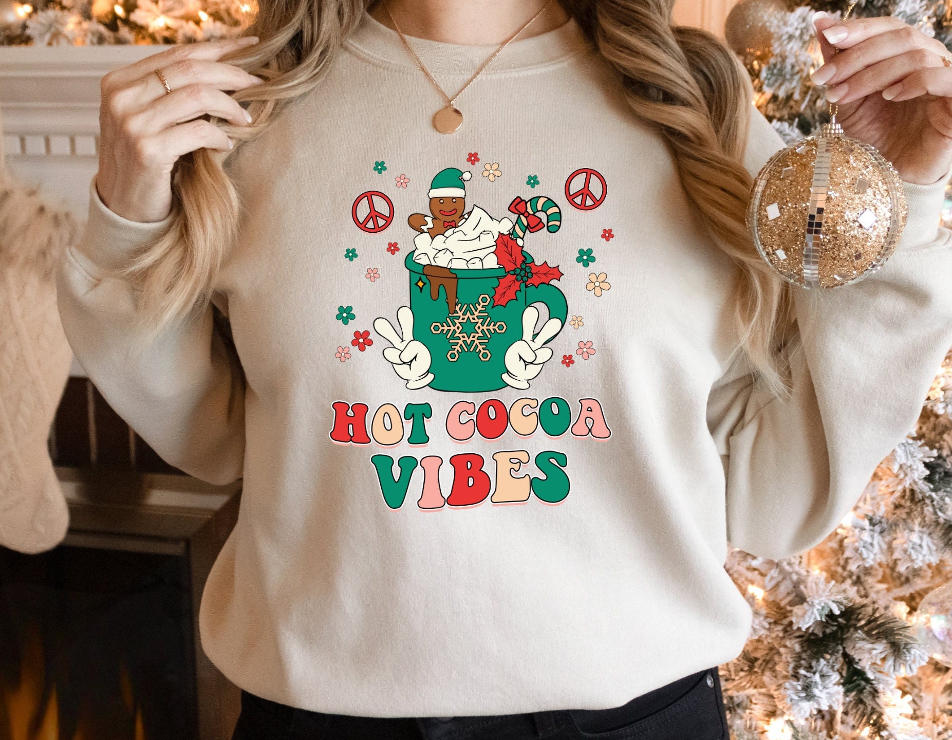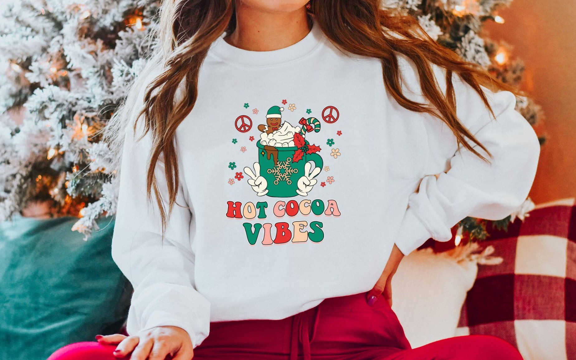 Christmas sweater, hot chocolate mug, hot cocoa shirt.