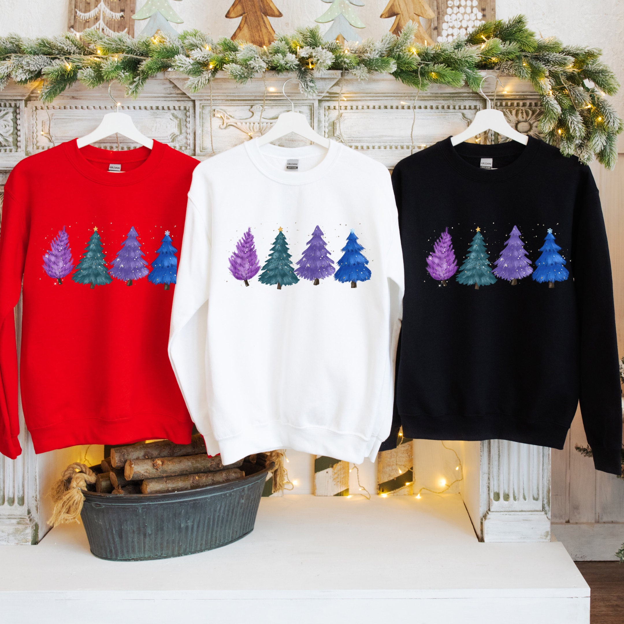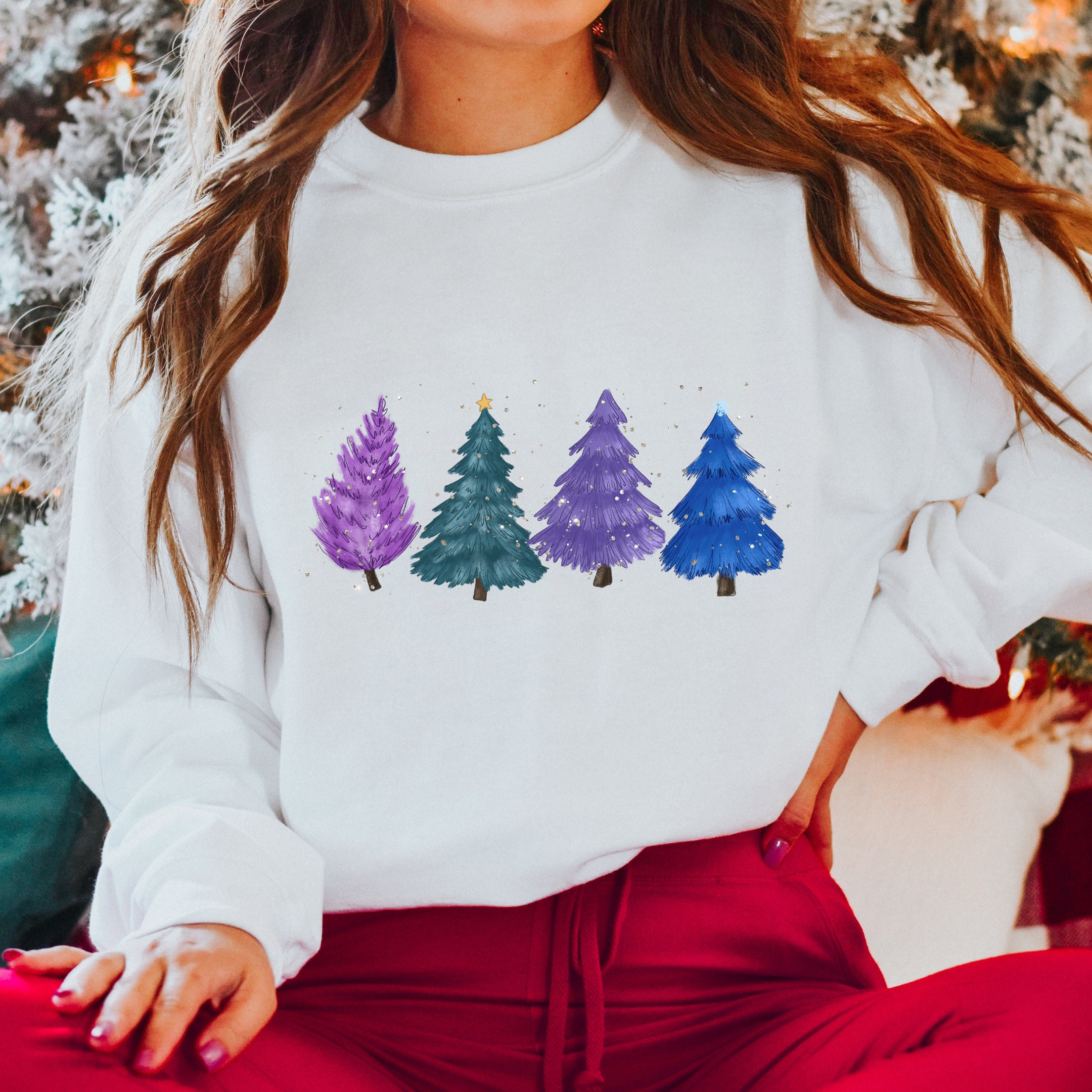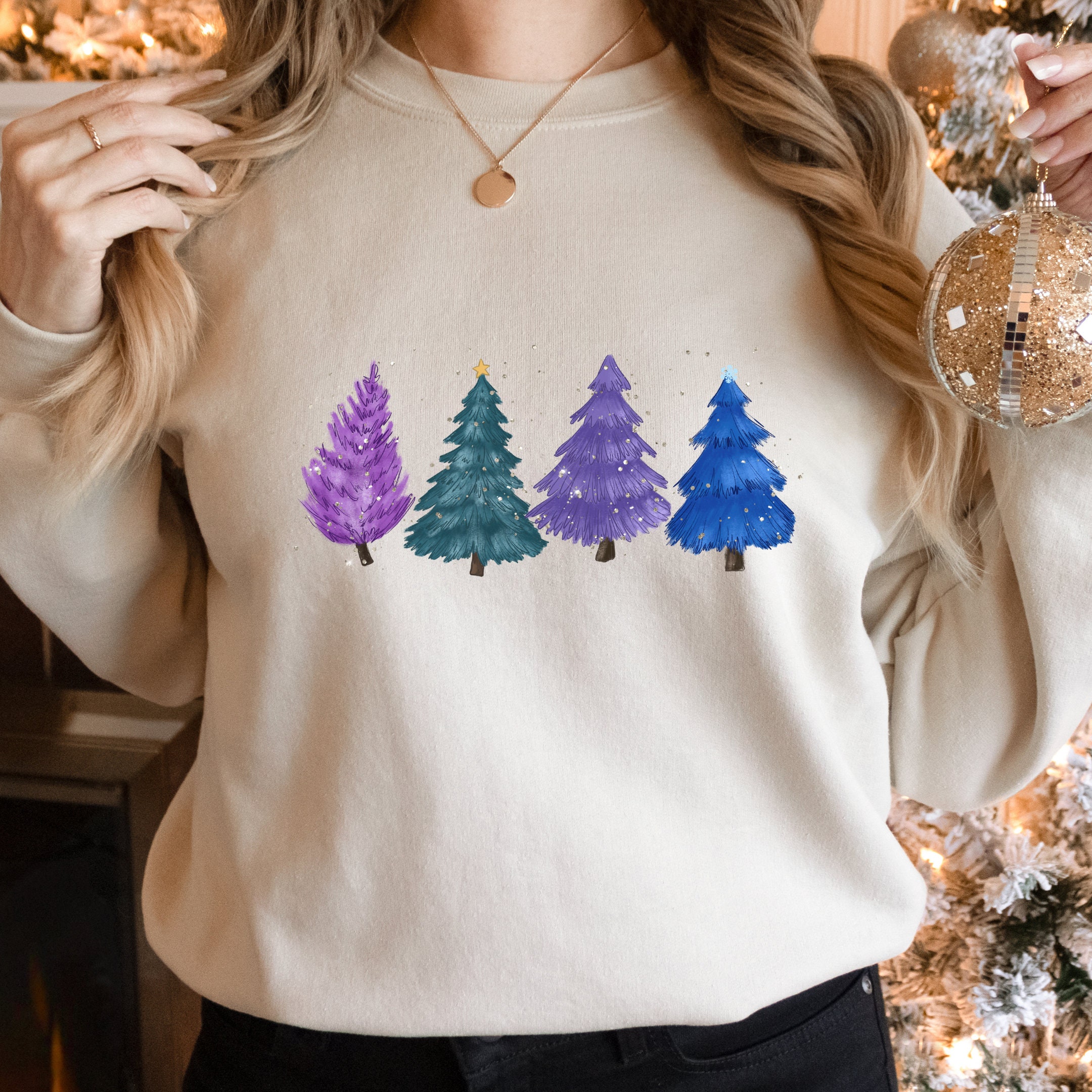 Colorful Christmas Tree & Warm Greetings Unisex Sweatshirt, Merry Christmas Sweater