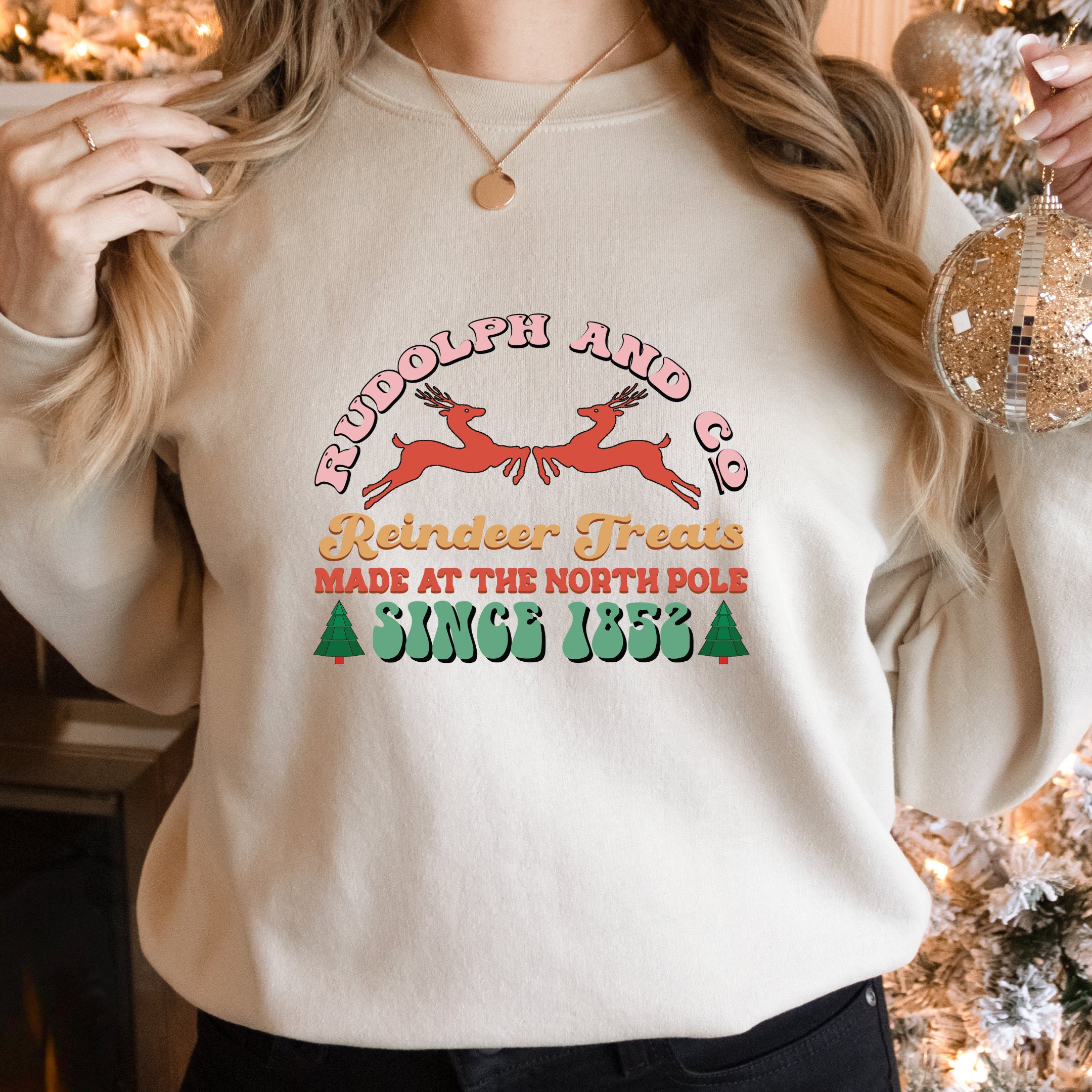 Rudolph & Co. Reindeer TreatsUnisex Sweater, Rudolf the Reindeer, Winter Christmas Sweater, Rudolf with the Red Nose, North Pole