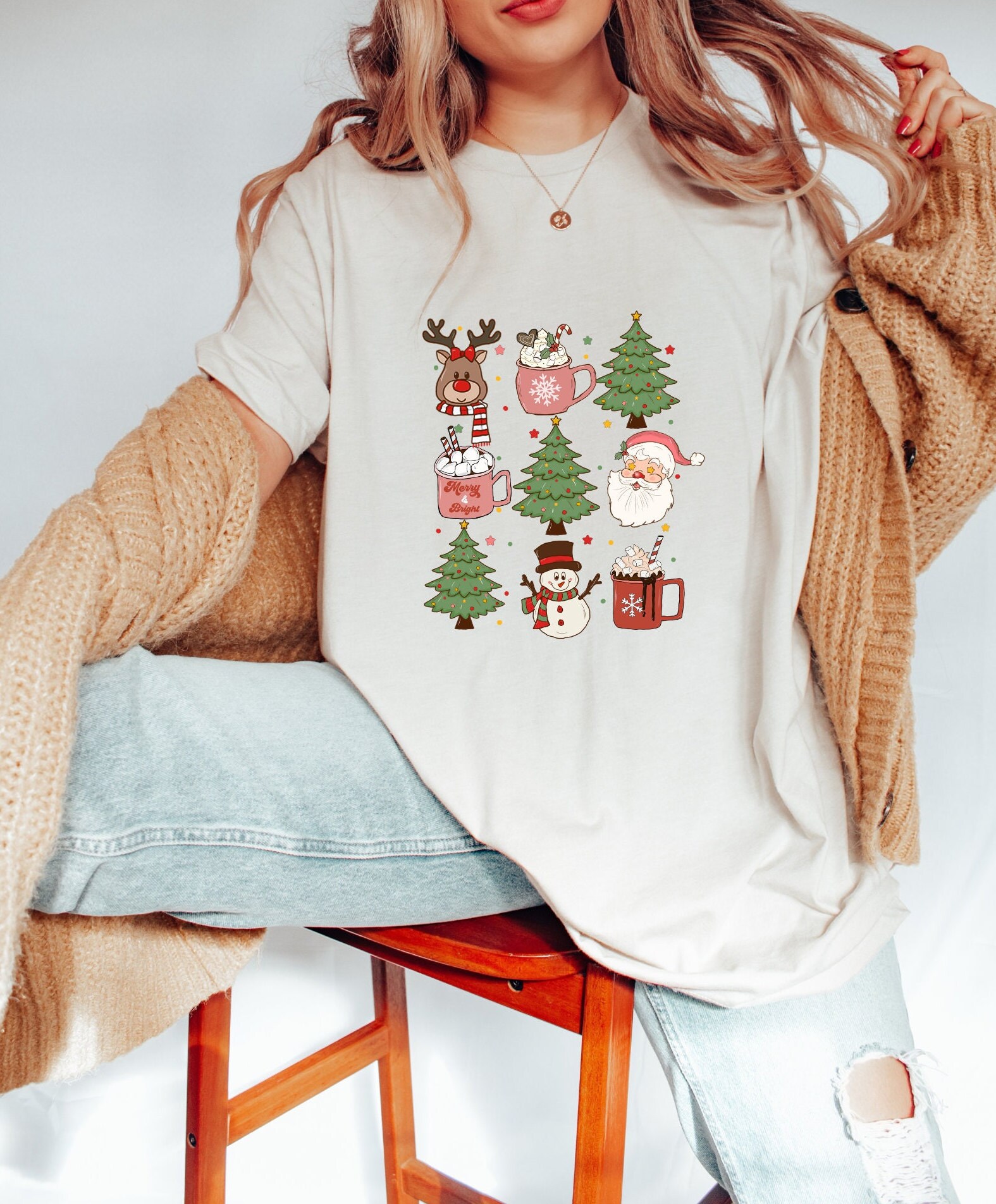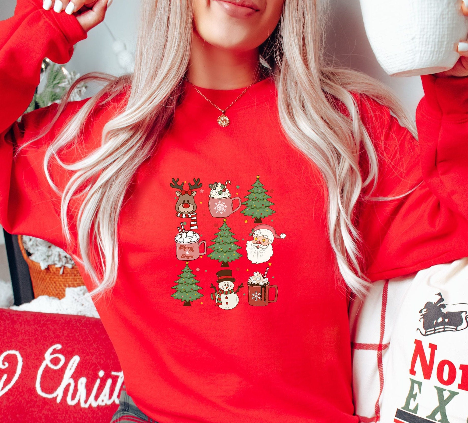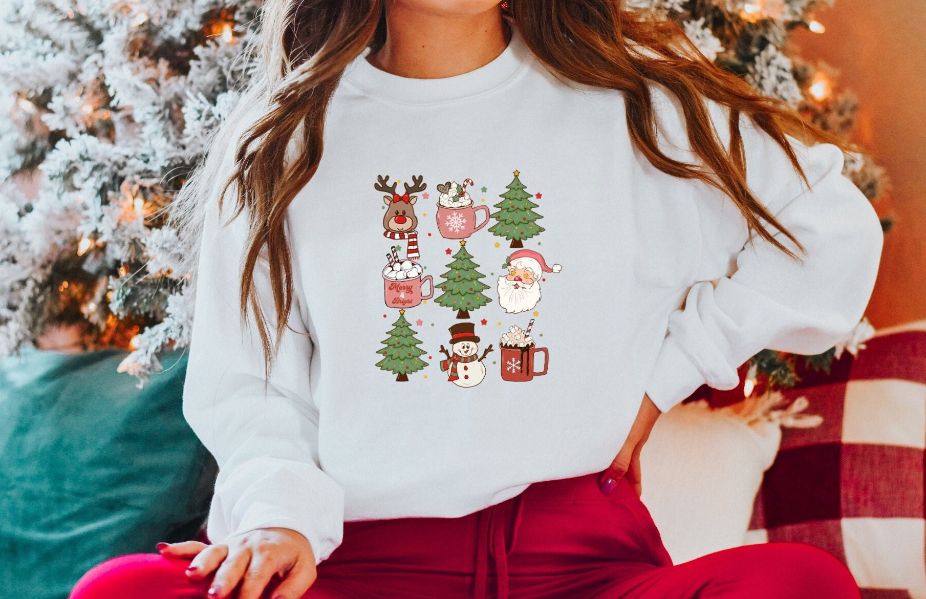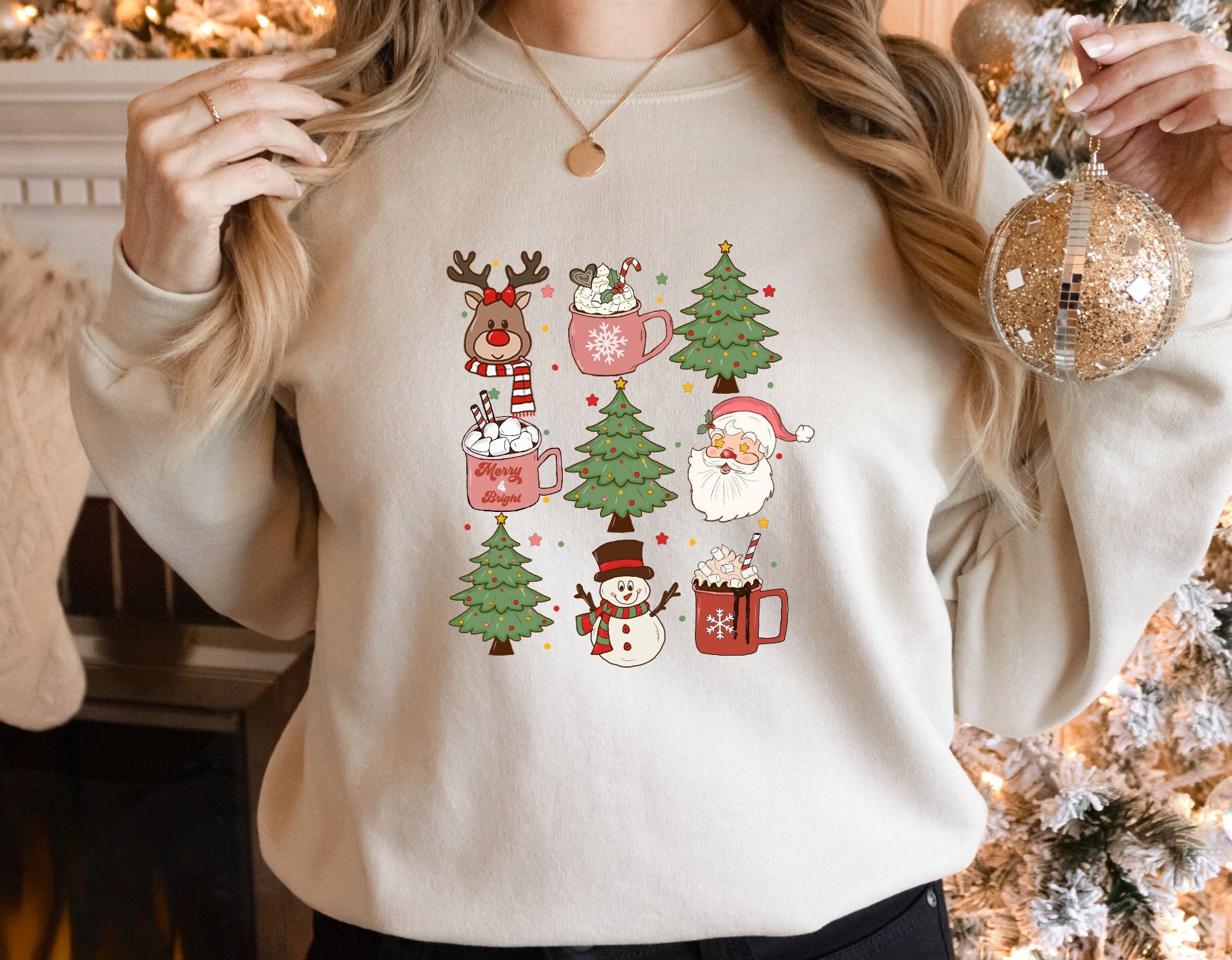Family Christmas sweater, ladies Christmas sweater, Christmas trees sweater, Christmas motif shirt.