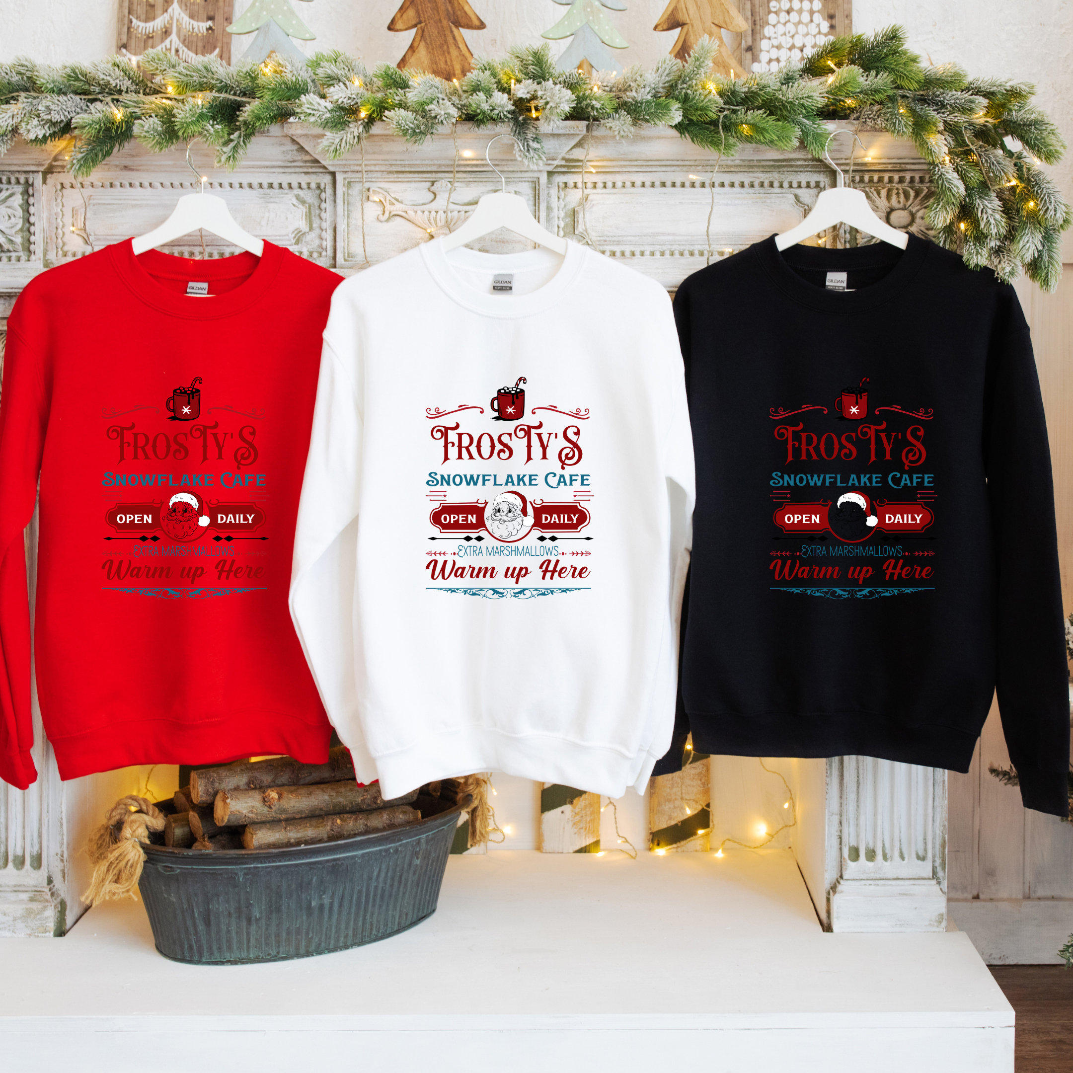 Frosty's Snowflake Cafe Unisex Sweater, Snowflake Café, Winter Christmas Sweater