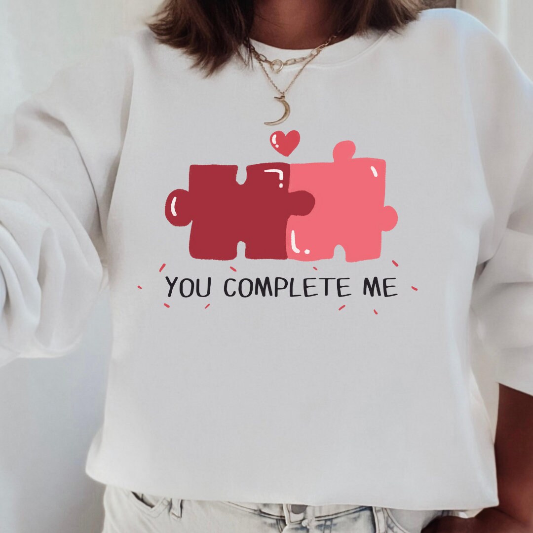 You Complete Me Sweatshirt, Valentine's Day Sweater, Pair Shirt, Couple Sweatshirt, Valentine's Day Glass, Partner Lock Sweatshirt.