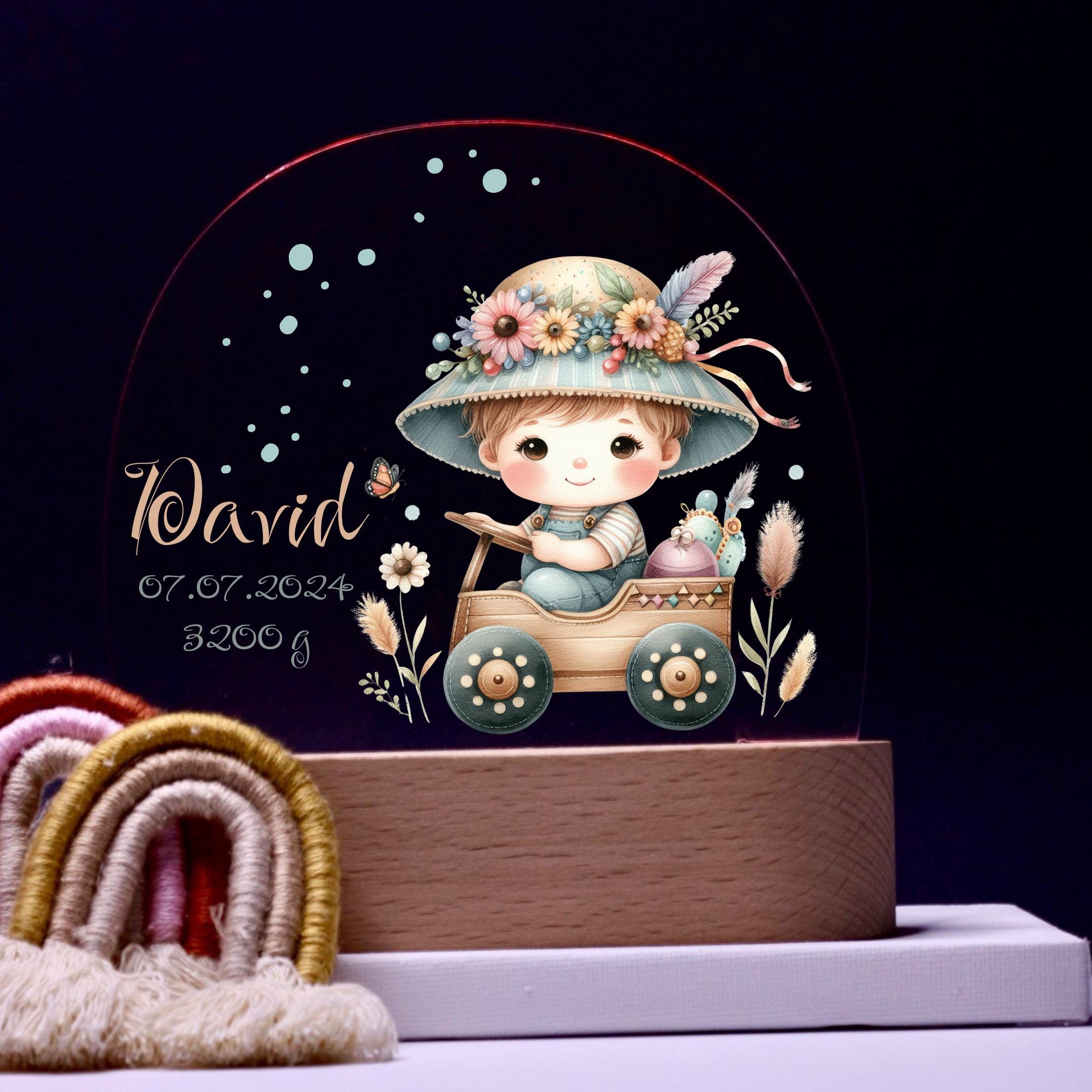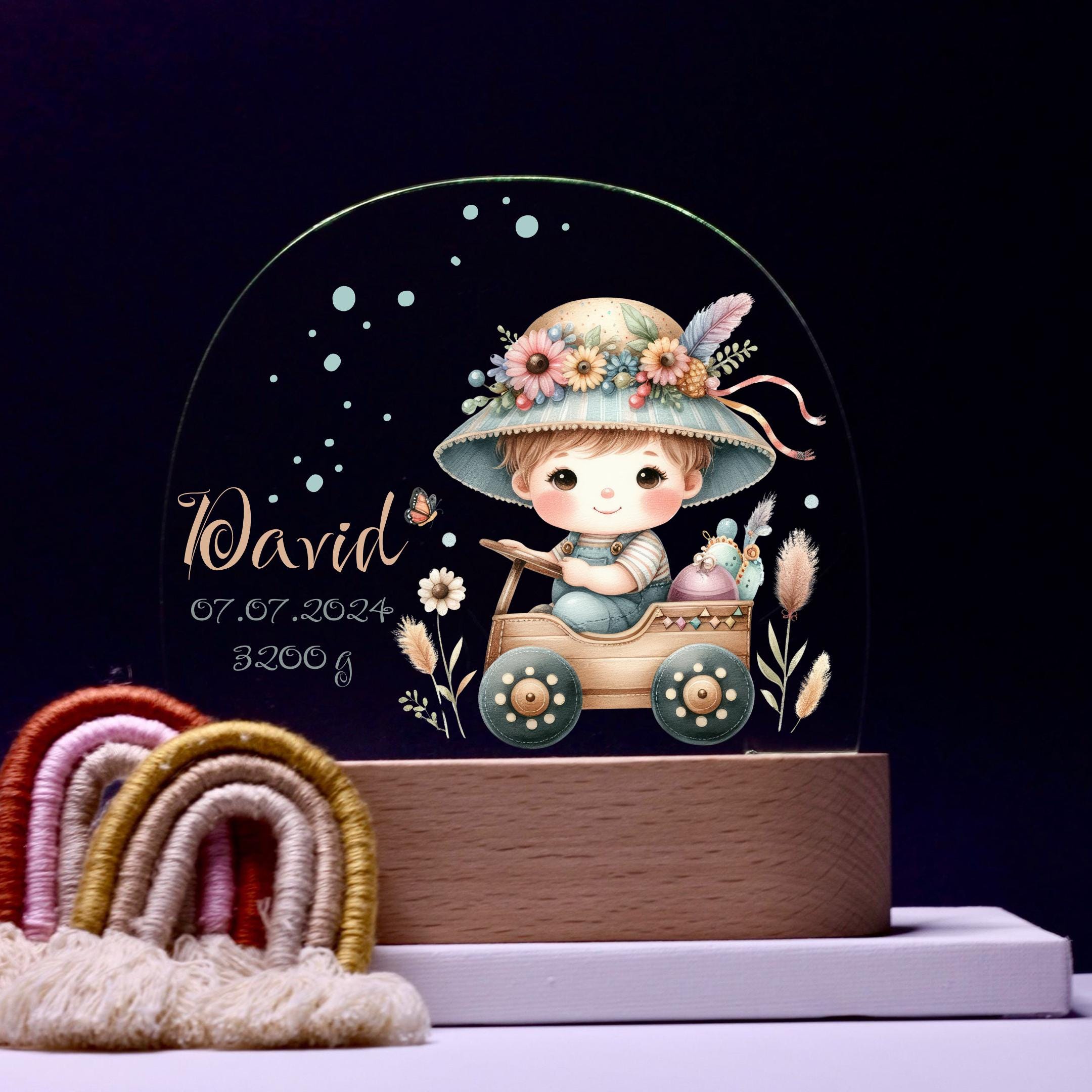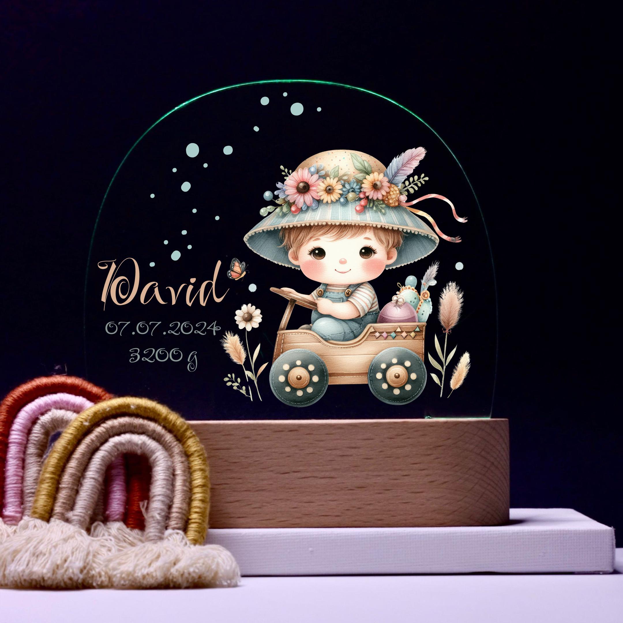 Personalize acrylic night lamp, boy, birth gifts, christening gift, children's room, decoration, bedside lamp